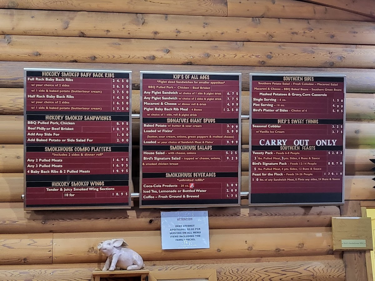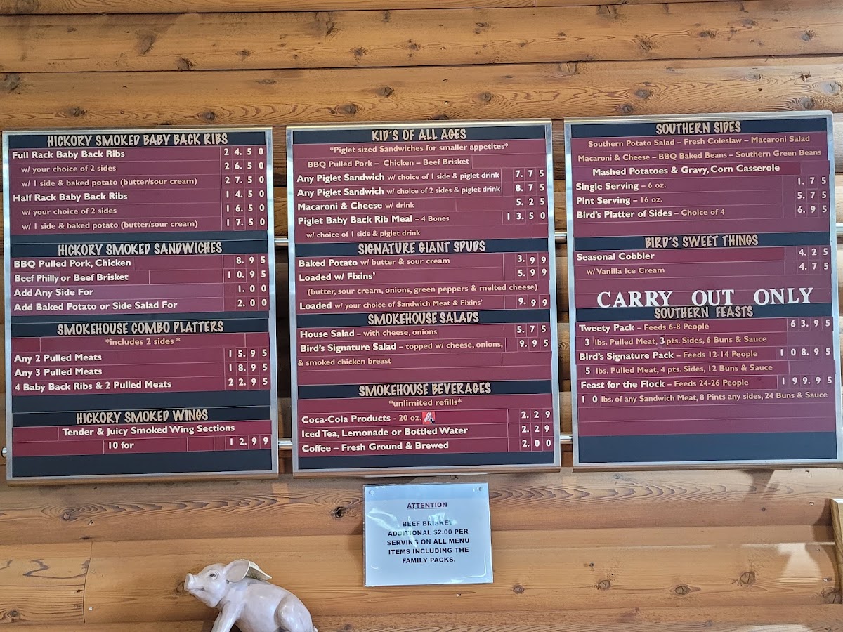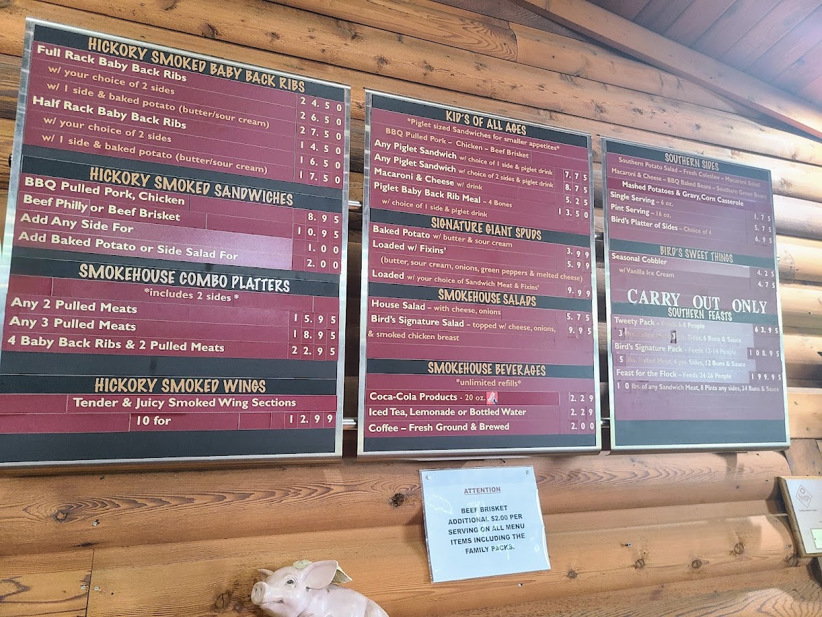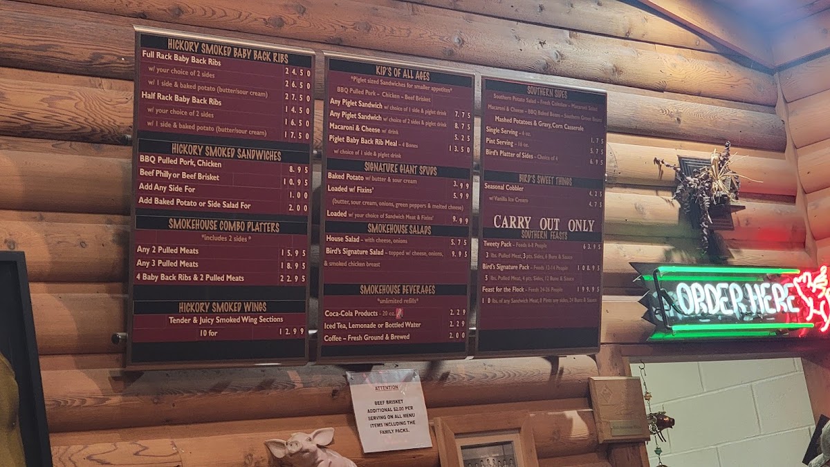 The menu also features classic sides like creamy mac and cheese, tangy coleslaw, and crispy fries, making it the perfect pairing to your smoky main course. Whether you’re in the mood for a quick bite or a full feast, Bird’s Smokehouse BBQ has something to satisfy everyone. With a cozy, inviting atmosphere, it’s a great spot to enjoy good food with friends and family.